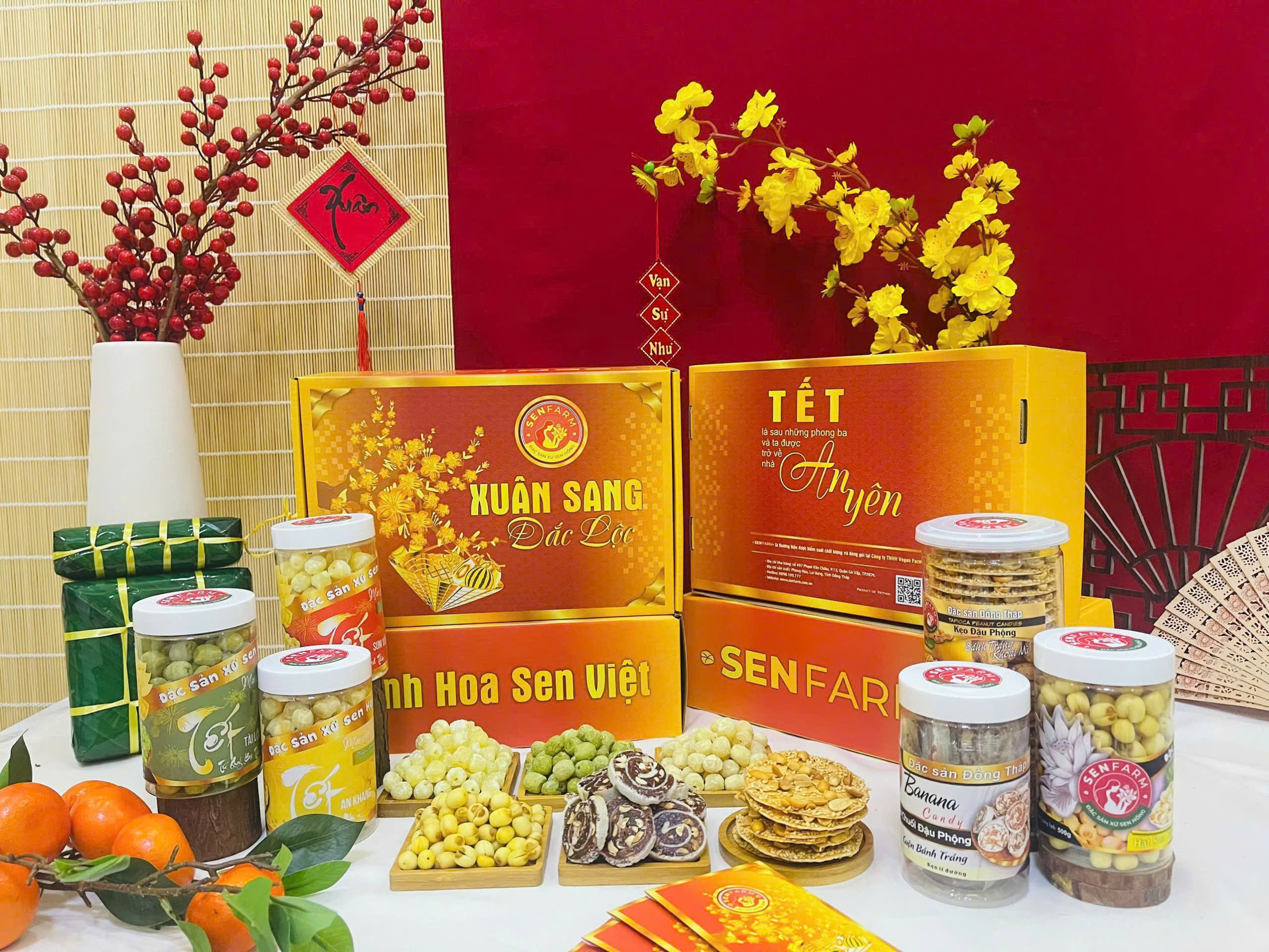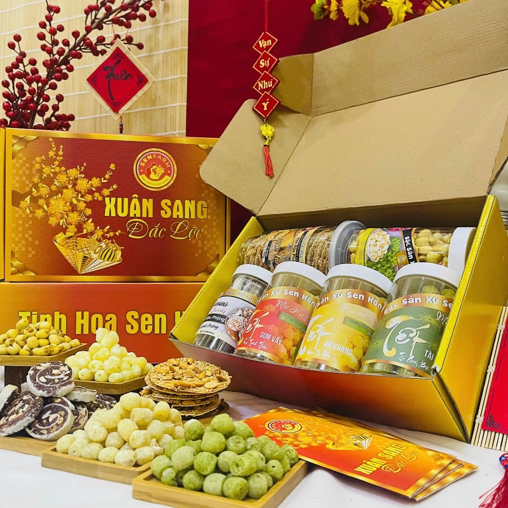 COMBO Thùng đặc sản xứ Sen hồng Đãi Tết Senfarm – Mứt Tết – Bánh Tết – Quà Tết