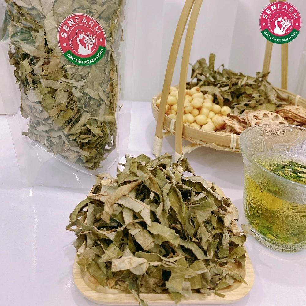 Trà Lá Sen Khô Cắt Sợi Senfarm – trà thảo mộc tự nhiên từ 100% lá sen tươi sấy khô, vị thanh mát, dễ uống, giúp thư giãn, ngủ ngon và thanh lọc cơ thể.